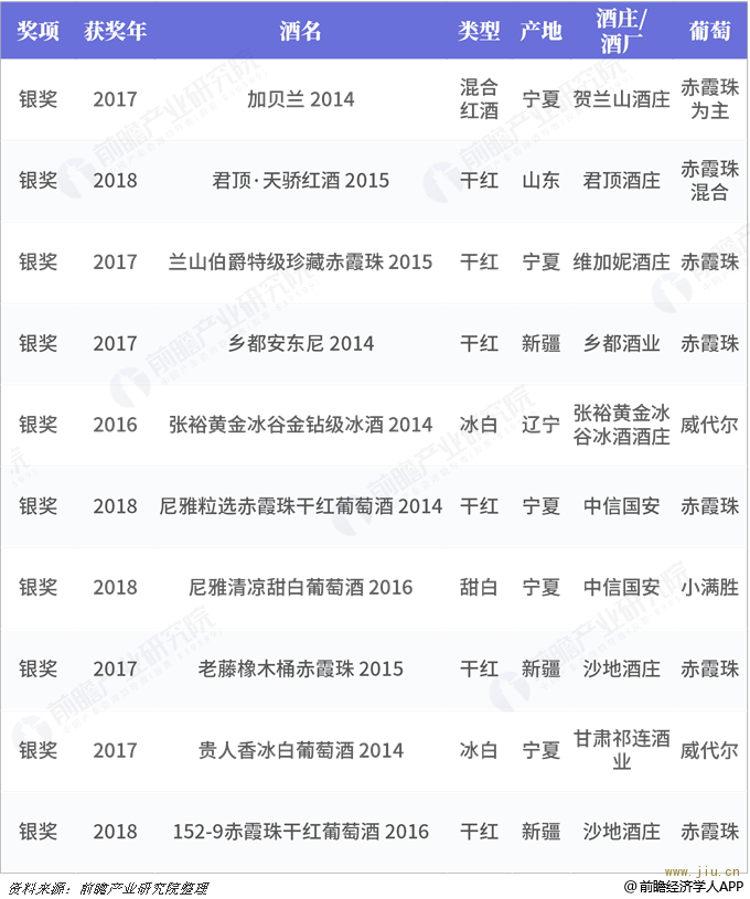 2016-2018年IWSC中国大陆获奖葡萄酒排行榜——银奖篇(二)