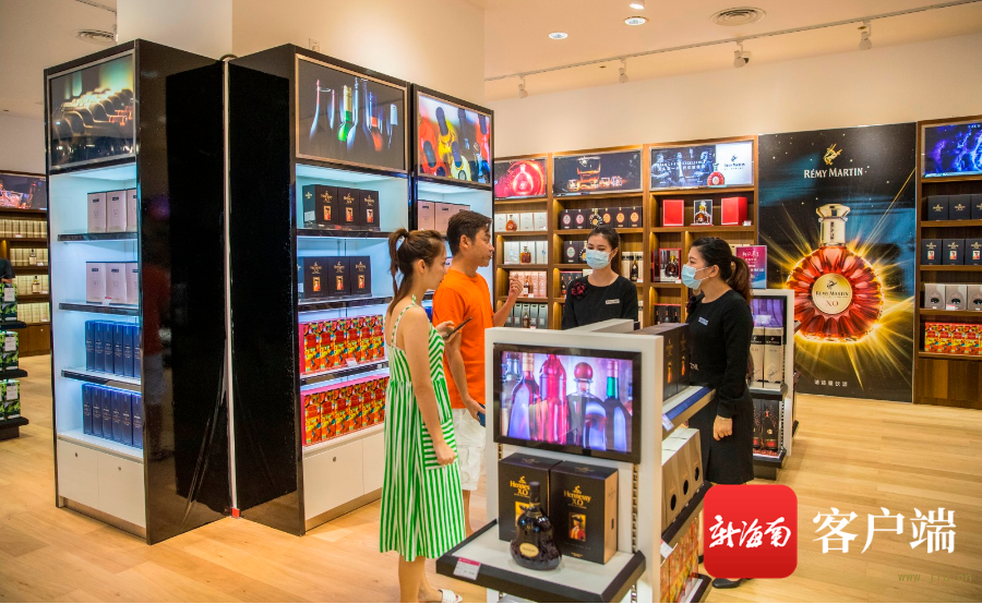 海口日月广场免税店,售卖的免税酒水琳琅满目。记者 刘洋摄